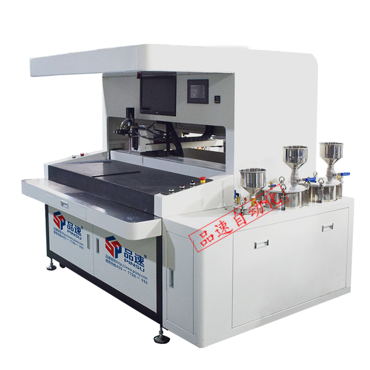 品速科技生產PS-SJ4060S視覺點膠機,采用伺服電機+絲桿運行,運行速度快,重復精度可達±0.01mm;機器可以實現精密定位,高清識別,自動配比,自動混合,精密點膠。