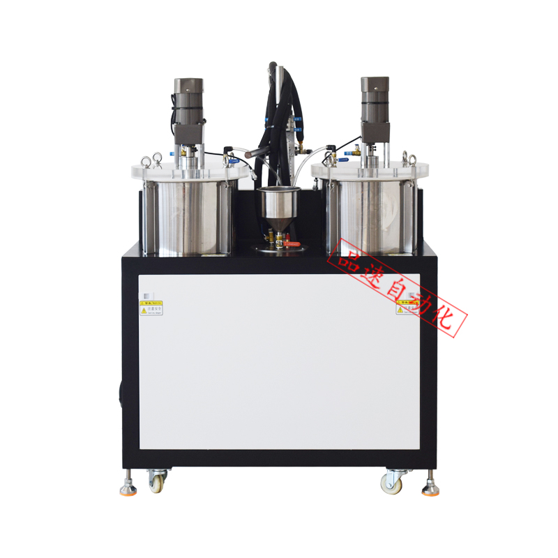 AB膠自動配比稱膠灌膠機是一種專門用于AB膠自動配比、自動混合、定量出膠和自動稱膠的自動化設(shè)備。它通常使用的膠水包括環(huán)氧樹脂ab膠、聚氨酯PU膠和硅膠等,而且適用比例可以在1:1到10:1之間進行固定比例調(diào)整。根據(jù)AB膠水的特性、粘度和出膠量等因素,AB膠自動配比稱膠灌膠機可以進行非標定制;例如,如果AB膠水中有氣泡,我們可以加裝真空泵對料桶中膠水進行抽真空消泡;如果AB膠水中有填料,我們可以加裝攪拌裝置對料桶中膠水進行攪拌防止膠水沉淀分層;如果膠水粘度大不易流動,我們可以加裝加熱裝置對料桶中膠水進行加熱,使其流動。