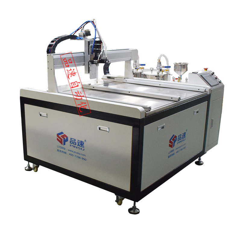 深圳市品速科技有限公司生產落地式真空灌膠機已加裝抽真空裝置,可以有效對膠桶中AB膠水進行抽真空消除氣泡,保證了灌膠的品質。真空灌膠機