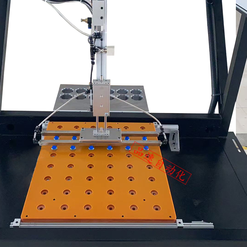 Y軸同步帶模組+步進,Z軸直線導軌+絲桿+步進,升降氣缸+吸真空